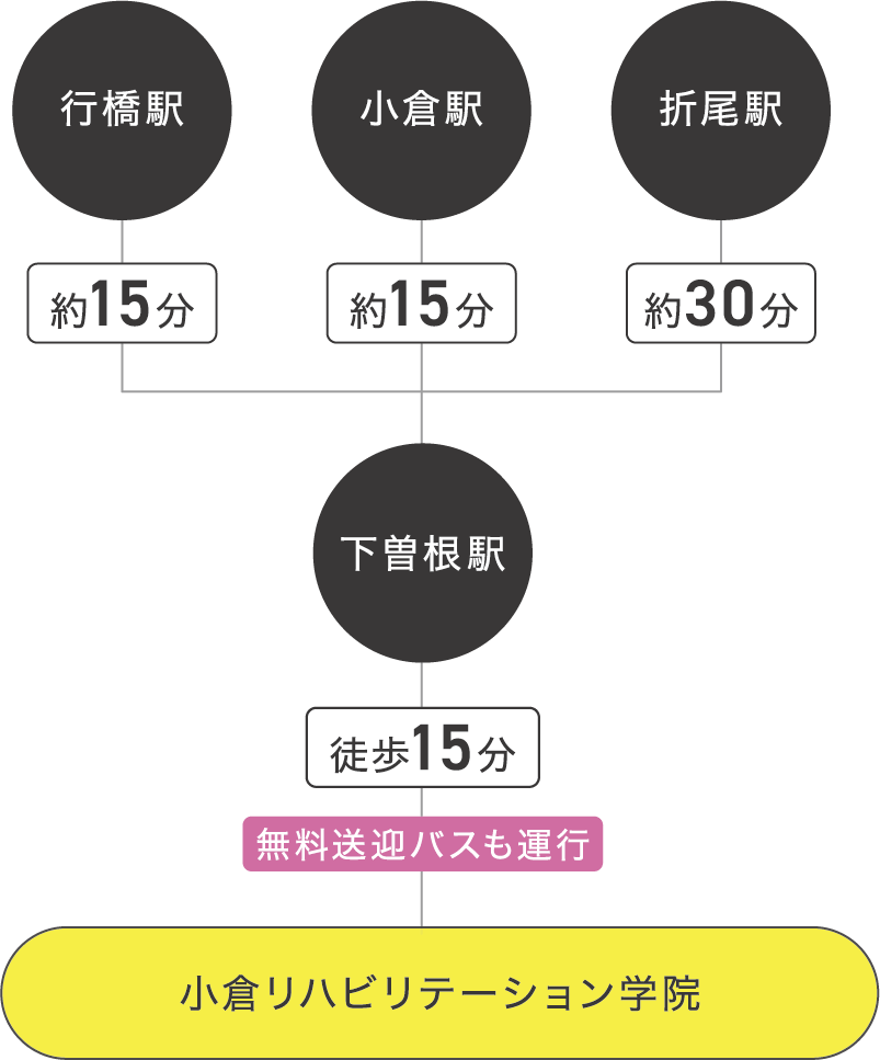 ※JR下曽根駅~当学院まで在校生通学用の無料送迎バス運行中