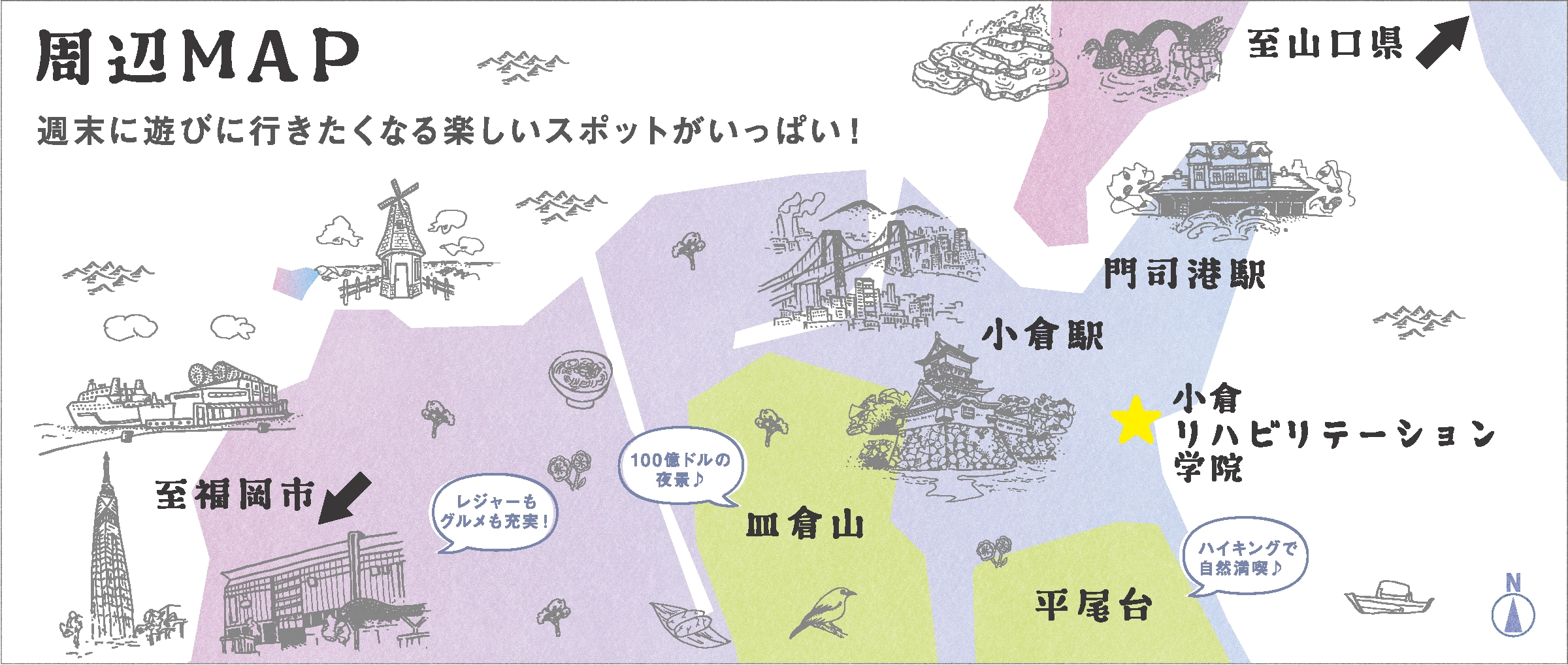 福岡県の北部に位置する北九州市は、歴史や文化・自然が息づく住み心地の良い街。レトロな建物が立ち並ぶ門司港や、新日本三大夜景に選ばれている皿倉山は観光地としても有名です。また福岡市や山口県などへ足を運びやすい環境にあるのもうれしいポイント。