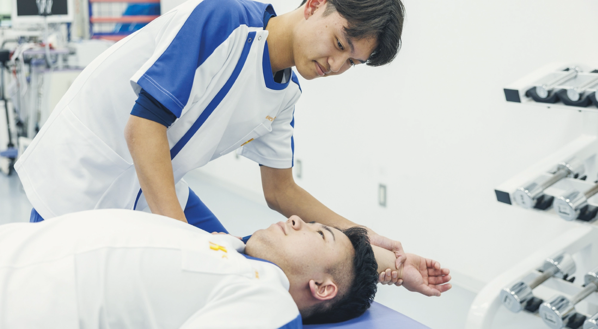 総合実習では、プロのセラピストの指導のもと、患者さんの協力を得て実際に評価・治療をすることで、プロとして通用する技術と意識を高めます。